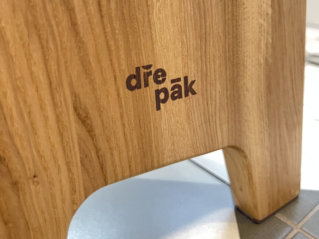 Občas se něco nepovede podle plánu. Tahle várka Dřepáků si odnesla drobné šrámy a logo se na jedné straně rozpilo do dřeva. Nejsou dokonalé, ale svůj účel plní na 100 %.